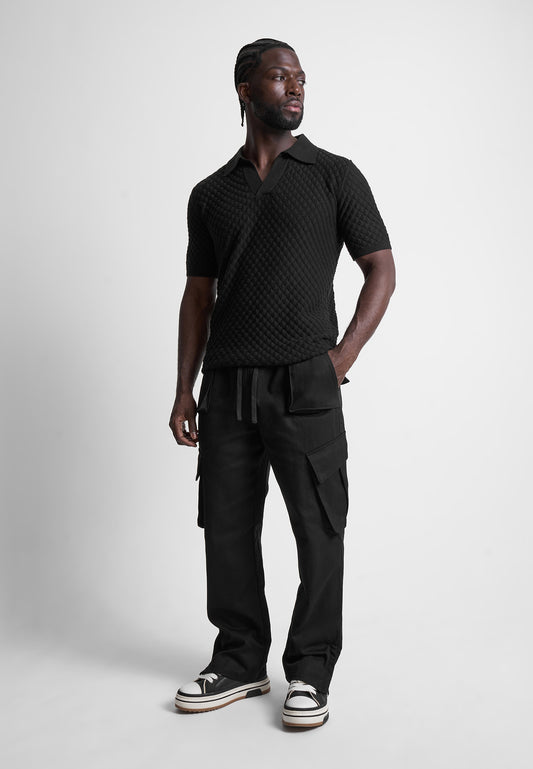 Shell Knit Revere Polo Top - Black