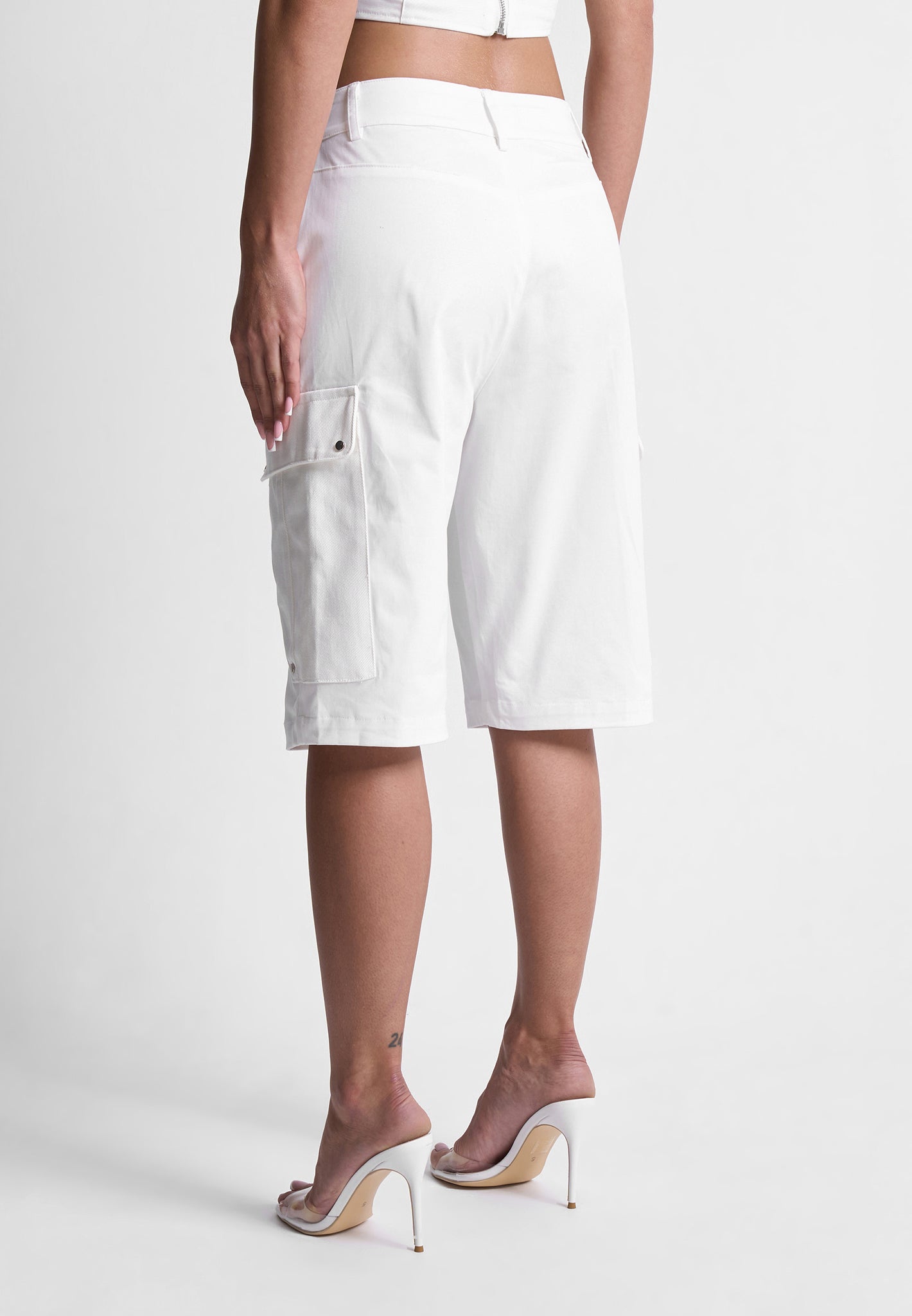 - White Cotton Mixed Fabric Cargo Shorts